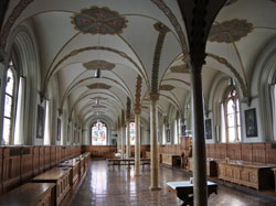 Nach dem Jüdischen Museum (02-2013) und dem Museum „Stoffels Säge-Mühle“ (07-2018) stand nun die Besichtigung des Hohenemser Palastes auf dem RPP-Programm. Errichtet in den Jahren 1562-1610 nach Plänen von Martino Longo, einst der Sitz der Emser Grafen, ist er heute einer der schönsten Renaissancebauten im Bodenseeraum. Das rechteckige Gebäude verfügt über einen schönen Innenhof mit Blendfassade und einen großen Rittersaal mit einer kunstvoll gearbeiteten Kassettendecke. Bauherr war Kardinal Markus Sitticus III. von Hohenems, dem späteren päpstlichen Legaten am Wiener Hof und Bischof von Konstanz. Anfang des 17. Jahrhunderts wurde der Palast erweitert, unter dem Grafen Kaspar von Hohenems - in dessen Regentschaft auch die Ansiedlung der jüdischen Gemeinde in Hohenems fiel, wie auch die Gründung der ersten Latein- und Musikschule, das erste Bankhaus und die erste Buchdruckerei. Die herrschaftliche Anlage, in der auch die Nibelungenhandschriften A und C gefunden wurden, befindet sich heute im Besitz der gräflichen Familie Waldburg-Zeil und wird auch von ihr bewohnt.