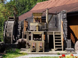 Am Weg vorbei am Palast zur Bergparzelle Reute (am Salzbach) liegt das historische Kerngebiet der Hohenemser Wirtschaft. Hier zwischen Schlossberg und Einfirst - das alte Rathaus steht ebenfalls dort - entwickelte sich ein ansehnliches Gewerbegebiet, das die Kraft des Wassers nutzte. Im Laufe der Zeit (seit 1549) wurden insgesamt vier Mühlen, acht Sägen, Werg-, Hanf- und Lohestampfen vom Salzbach angetrieben. „Stoffels Säge-Mühle“ ist der letzte Rest davon und es lässt sich seit damals der ununterbrochene Betrieb als Säge und ab 1878 als Mühle nachweisen. Die Anlage, die immer mit zwei Wasserrädern angetrieben wurde, ist seit 1835 im Besitz der Familie Kick-Amann mit Hausnamen „Stoffels“. Im Jahre 1956 wurde der Mühlebetrieb und im Jahre 1979 der Sägebetrieb eingestellt. Das Museum wurde 1987 auf Privatinitiative der Familie Alois Amann errichtet und 1999 erweitert. Insgesamt 35 Müllereimaschinen ab 1880, Mühlentechnik zwischen 1920 und 1955 bis hin zu modernen computergesteuerten Mühlen von 1990 zeigen die komplette Weiterentwicklung der Mühlentechnik in vielseitigster Weise auf. Diverse Schautafeln über Weizenkorn, Getreideschädlinge, Unkrautsamen, die vier Hauptprozesse für die Mehlerzeugung, Aufbau einer Mühle von 1950 mit einer Mahlleistung von 24 t am Tag sowie die Darstellung und Modelle von Mühlen von 1990 mit einer Mahlleistung von 300 t und 880 t am Tag konnten bewundert werden.