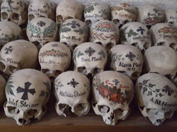 Eingehüllt in ein Flair von 7.000-jähriger Geschichte liegt Hallstatt ruhig am Westufer des Hallstätter Sees mitten im Salzkammergut. Die alten Häuser, die wie Schwalbennester in den Berg gebaut sind, vermitteln ein besonders interessantes Bild. Der Anblick von Hallstatt vom See aus verzaubert Besucher wie Einheimische. Die knapp 800 Einwohner leben hier im Einklang mit ihrer langen Geschichte. Das sieht man besonders an der liebevollen Pflege und Erhaltung ihrer alten Häuser. Als gesellschaftlicher Treffpunkt gilt für alle der Marktplatz. In seinem Zentrum steht die mächtige Dreifaltigkeitssäule, die sechs Jahre nach ihrer Entstehung eine der größten Katastrophen von Hallstatt miterleben musste. Am 20. September 1750 ging vom Haus des "Keferbäcks", dem jetzigen Café Derbl eine Feuerbrunst aus, die den größten Teil des Marktes in Schutt und Asche legte. 35 Häuser im Ortszentrum gingen in Flammen auf und vier Menschen starben dabei. Vom Marktplatz führten schmale Wege, Stiegen und Durchlässe zur höher gelegenen katholischen Pfarrkirche und dem weltberühmten Beinhaus. Beim Anstieg wurden immer wieder Zwischenstopps eingelegt, um über die Geschichte von damals zum heute aufgeklärt zu werden. Gemeinsam mit dem Beinhaus und dem beschaulichen Bergfriedhof ist die historische Wallfahrtskirche Maria Himmelfahrt (1500-1505) einer der Besuchermagneten in Hallstatt. Weit über die Grenzen Österreichs hinaus bekannt ist auch der spätgotische Flügelaltar (1510-1520) von Meister Leonhard Astl, der als Stiftung der Bergknappen gilt und eine kunsthistorische Besonderheit darstellt. Das daneben stehende, aus dem 12. Jahrhundert stammende Beinhaus in der Michaels Kapelle beherbergt eine außergewöhnliche Sammlung von über 600 kunstvoll bemalten Schädeln. Einige wurden schon Ende des 18. Jahrhunderts bemalt, manche stammen aber auch noch aus dem 20. Jahrhundert. Der Friedhof wurde auf Felsterrassen um die Pfarrkirche angelegt. Der Teil vor dem Beinhaus ist den evangelischen Christen zugeteilt. Nach der Friedhofsordnung gibt es keine Familiengräber. Nach zehn Jahren kann ein Grab neu belegt werden. Danach wurde noch der grandiose Rundblick genossen und der Rückweg in Richtung Seeufer und Mittagspause angetreten. Die Fremdenführerin hatte noch viele interessante weitere Details genannt, die im Bericht eigentlich aufgezählt werden müssten. Der RPP-Truppe stand bis zum nächsten Höhepunkt nur eine kurze Verschnaufpause zur Verfügung, die in einem urigen Gastgarten direkt am Hallstätter See zum Essen und Trinken genutzt wurde. Anschließend war der Besuch des ältesten Salzbergwerks der Welt auf dem Besichtigungsprogramm.