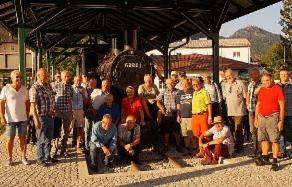 Der Weg ins historische Zentrum führte über den Bahnhofsvorplatz, wo man einen kurzen Zwischenhalt bei den noch vorhandenen "Überresten" der Salzkammergut-Lokalbahn für ein Gruppenfoto einlegte. Weiter ging es zu den architektonischen Sehenswürdigkeiten, wie das Kongress- und Theaterhaus, die Sophiens Esplanade, die Lehár-Villa und die Trinkhalle Ischl. Nicht fehlen durfte beim Stadtrundgang die katholische Stadtpfarrkirche St. Nikolaus mit ihrem 72 m hohen Turm. Im Inneren fallen die Fresken, die Altarbilder, die Mosaike, der geschnitzte Kreuzweg und vor allem die in Österreich einzigartige, 1888 gebaute "Kaiser-Jubiläums-Orgel" besonders ins Auge. Bevor die Besichtigungstour beendet wurde, wies er noch darauf hin, dass es rund um Bad Ischl zahlreiche weitere lohnenswerte und interessante Ausflugsziele wie die Aussichtsberge Katrin, Elferkogel und Hainzen zu erkunden gibt. Danach stand den Teilnehmern der Abend zur freien Verfügung, wobei einige sofort in die ehemalige k.&k. Hofzuckerbäckerei Zauner (gegr. 1832) zum größten Mehlspeisenbuffet Österreichs auf Kaffee und Kuchen gingen. Um ca. 22:00 Uhr waren die meisten RPP’ler wieder an der Hotelbar anzutreffen, wo sie den ersten Reisetag gemütlich ausklingen ließen.