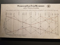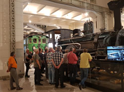 Den Schwerpunkt in der Führung bildete die Eisenbahnsammlung mit über 60 Großobjekten, teilweise über 150 Jahre alte Originale. Von all diesen Exponaten faszinierten die Fahrzeuge am meisten. Um die große Mittelhalle sind sechs der wertvollsten Fahrzeuge aufgestellt. Thematisch sind sie nicht nur Teil der Ausstellung „Verkehr“, sie gehören genauso zu den Bereichen „Schwerindustrie“ und „Energie“. Kohle und Stahl aus Mähren wurden auf der Kaiser-Ferdinand-Nordbahn transportiert. Die Dampflokomotive „Ajax“ dieser Bahnlinie ist ein Zeuge der Zeit. Gleichzeitig steht sie auch als Beispiel für ein Endprodukt der Schwerindustrie. Strom aus Wasserkraft war nach dem Ende der Monarchie der Weg, um die Eisenbahn in Österreich mit heimischer Energie zu versorgen. Die Lokomotive 1060.001 von 1912 steht im Museum unweit eines Turbinensatzes des Ruetz-Kraftwerkes. Beide wurden für die Mittenwaldbahn erbaut. Der elektrische Antrieb ist heute für die Eisenbahn ebenso dominierend, wie es zu Beginn des 20. Jahrhunderts die Dampfkraft war. So steht neben der 1060.001 eine Dampflokomotive, die auch den Bezug zum Bereich „Energie“ herstellt. Diese besondere Dampflokomotive - die 1.20 der k.k. Österreichischen Staatsbahnen - ist sogar in Bewegung zu bewundern. Aufgeschnitten lässt sich ein Blick in das Innere der Lokomotive werfen und während der Vorführung konnte man die Arbeit von Zylinder und Gestänge verfolgen.