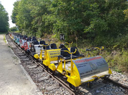 Nach einer ca. 40-minütigen Busfahrt wurde der Starplatz Ernstbrunn-Thomasl zeitgerecht erreicht. Als erstes musste für jede Draisine eine Art Verhaltenskodex (Spielregeln) unterschreiben werden, anschließend gab es eine kurze Einschulung von einem Instruktor. Das Augenmerk lag hier vor allem bei den Sicherheitsbremsvorrichtungen vor Straßen- und Wegekreuzungen. Alle Draisinen sind einheitlich mit zwei Fahrradsattel-Sitzen für die „Pedalritter“ und zwei bequemen Mittelsitzen für die „Mitfahrer“ ausgestattet. Durch die identischen Fahrzeuge war somit jederzeit ein Tauschen beim Überholen mühelos möglich.
