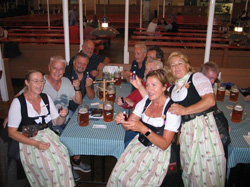 Mit der vereinbarten Gondel fuhr die Sonder-RPP-Truppe wieder talwärts, um mit dem Bus in das ca. 10 km entfernte Salzburg zum wohl bekanntesten und beliebtesten Wirtshaus der Stadt gebracht zu werden. "Die Weisse", wie die Lokalität heißt, wurde für das Abendessen auserkoren und außerdem das über die Grenzen hinaus bekannte flaschenvergorene, naturtrübe Weißbier ausprobiert. Danach diskutierte man gemeinsam noch über die Tageseindrücke und die Teilnehmer verabschiedeten sich schließlich einzeln oder in Kleingruppen in den fortgeschrittenen Abend. Die meisten trafen sich nochmals zu einem "Schlummertrunk" in einem Lokal in Hotelnähe …
