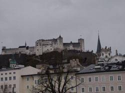 Nach dem Frühstück wurden die Zimmerschlüssel zurückgegeben und das Reisegepäck an der Hotelrezeption zur Aufbewahrung abgestellt. Gemeinsam fuhren die Teilnehmer mit dem Linienbus bis zur Haltestelle "Mozartsteg" (Rudolfskai), um durch die Altstadt vorbei am Dom zur Standseilbahn zu gelangen. Oben auf der Festung angekommen, startete die Führung in zwei getrennten Gruppen.