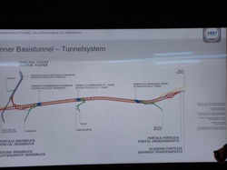 Am Bf. Steinach in Tirol wurden die Teilnehmer von Hörtnagl Georg bereits erwartet. Gemeinsam ging es "per pedes" (= auf Schusters Rappen) zu den 1,1 km entfernten BBT-Tunnelwelten mit einer Besichtigung der Schauräume. Eine knapp zweistündige, sehr informative Präsentation erfolgte zu den Planungen und aktuellen Arbeiten durch den ehemaligen ÖBB-Kollegen Abfalterer Robert, der bei der BBT SE für die betriebsseitigen Prozesse und Erfordernisse zuständig ist. Der Brenner Basistunnel ist ein Eisenbahntunnel, welcher von Innsbruck bis nach Franzensfeste führt. Gemeinsam mit der bereits bestehenden Umfahrung Innsbruck erreicht er eine Länge von 64 km. Somit entsteht unter dem Brennerpass die derzeit längste unterirdische Eisenbahnverbindung der Welt. Ohne den Umfahrungstunnel Innsbruck, das heißt vom Portal Innsbruck bis zum Portal Franzensfeste, hat der Tunnel eine Länge von 55 Kilometern. Durch den Wegfall von Höhenunterschieden sind hier mehr, längere und schwerere Güterzüge möglich, benötigen weniger Energie als auf der Bestandstrecke und sind aufgrund der kürzeren Streckenführung schneller an ihrem Bestimmungsort. Auch im Personenverkehr verkürzt die neue Strecke die Fahrzeit deutlich. Reisezüge können den Tunnel mit über 200 km/h durchfahren, das bedeutet zwischen Innsbruck und Franzensfeste eine zukünftige Fahrzeit von nur 25 anstelle der heutigen 80 Minuten.