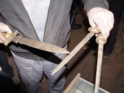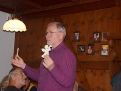 Aber nicht verzagen, denn im Wipptal gibt es immer eine Alternative bzw. ein „aus dem Hut gezaubertes“ kurzfristiges Ersatzprogramm. Hörtnagl Georg aktivierte in Matrei am Brenner seine Kollegen der Künstlerfamilie Amort mit einem Besuch in der Kunstschlosserei und einer kleinen praktischen Handwerkspräsentation. Innerhalb kürzester Zeit schmiedeten die Brüder Georg und Paul einen kleinen Pinguin und ein Seepferdchen aus glühendem Eisen. Danach schauten die 17 „wetterfesten“ RPP’ler auch noch beim international bekannten Künstler Anton vorbei, der sein Atelier und seine Kunstgalerie zur Besichtigung öffnete. Seine Arbeiten - Schleifbilder mit der Flex als Malutensil, Akt- und Landschaftsmalerei, Stahl- und Steinskulpturen, usw. - zeugten von seinem außerordentlichen Talent.
