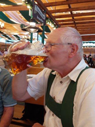 Die kleine RPP-Abordnung wurde in der Auerbräu-Festhalle von den bekannten Kellnerinnen bereits erwartet und in die "Logenplätze" eingewiesen. Sie bedienen nach wie vor sehr freundlich und überaus schnell. Nach dem Mittagessen haben auch diesmal einige Teilnehmer ihre "Magenstabilität" an Karussell, Achterbahn oder anderen technischen "Vergnügungsgerätschaften" ausgetestet oder ein Mitbringsel für zuhause eingekauft. Danach wurde nicht nur der Durst mit dem einen oder anderen Maßkrug gelöscht, über alles mögliche diskutiert, sondern zwischendurch ebenfalls der bemühten Musikkapelle zugehört. Alle RPP’ler sind gemeinsam zu Fuß von der Festwiese aufgebrochen, um zeitgerecht am Bahnhof für den geplanten Heimfahrzug zu sein. Den Rückmeldungen zufolge hat der Tagesausflug nach Rosenheim den Teilnehmern wieder sehr gut gefallen.