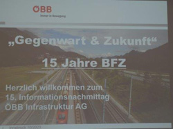 Anschließend präsentierte Projektkoordinator Pühringer Werner die geplanten Infrastrukturprojekte bis zum Jahr 2030 im Bereich der Region West. Auslöser dazu sind die gestiegenen Anforderungen an die Infrastruktur, den Abhängigkeiten von Projekten zum Brenner Basistunnel, die Erneuerung der Sicherungsanlagen und -einrichtungen sowie die Erfüllung von Kundenanforderungen. Von den vorgestellten vielen wichtigen Einzelprojekten soll hier der Neubau der BFZ Innsbruck bis 2028 genannt werden. Das Unternehmen will anstelle der derzeitigen Mietvariante - auch aus Sicherheitsgründen wegen der "Kritischen Infrastruktur" - in einen neu zu errichtenden eigenen Hochbau übersiedeln.
